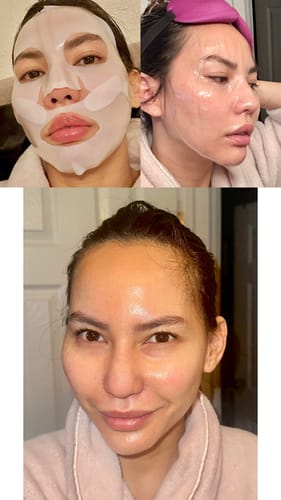 ¡No puedo expresar lo mucho que amo esta máscara!1. No se cae fácilmente como lo hacen la mayoría de las máscaras.2. Te brinda una agradable sensación calmante una vez que está en la cara.3. Hace que mi piel sea tan suave y agradable al día siguiente.4. Literalmente puedo hacer de todo (ver televisión o teléfono, hacer yoga por la noche, jugar con mi perro, etc.) con la mascarilla puesta. ¡Es un producto realmente efectivo y sin esfuerzo!